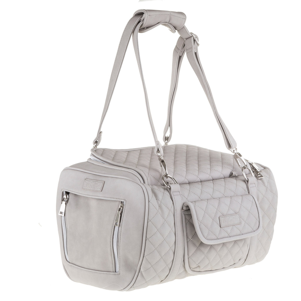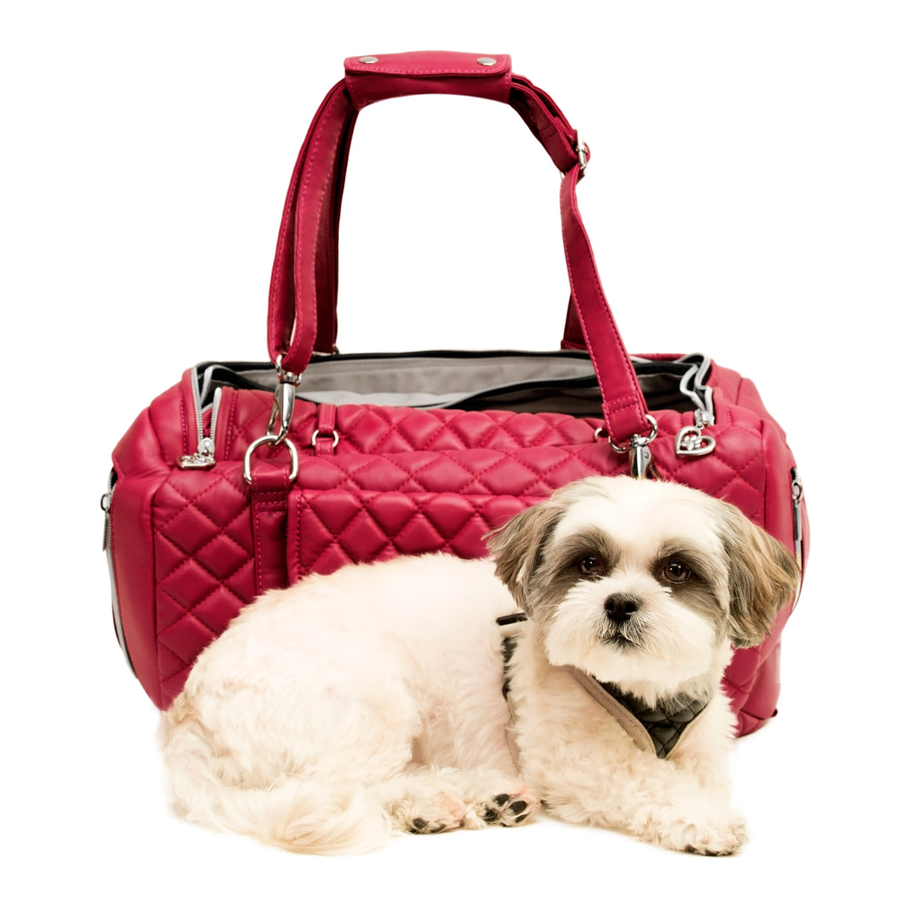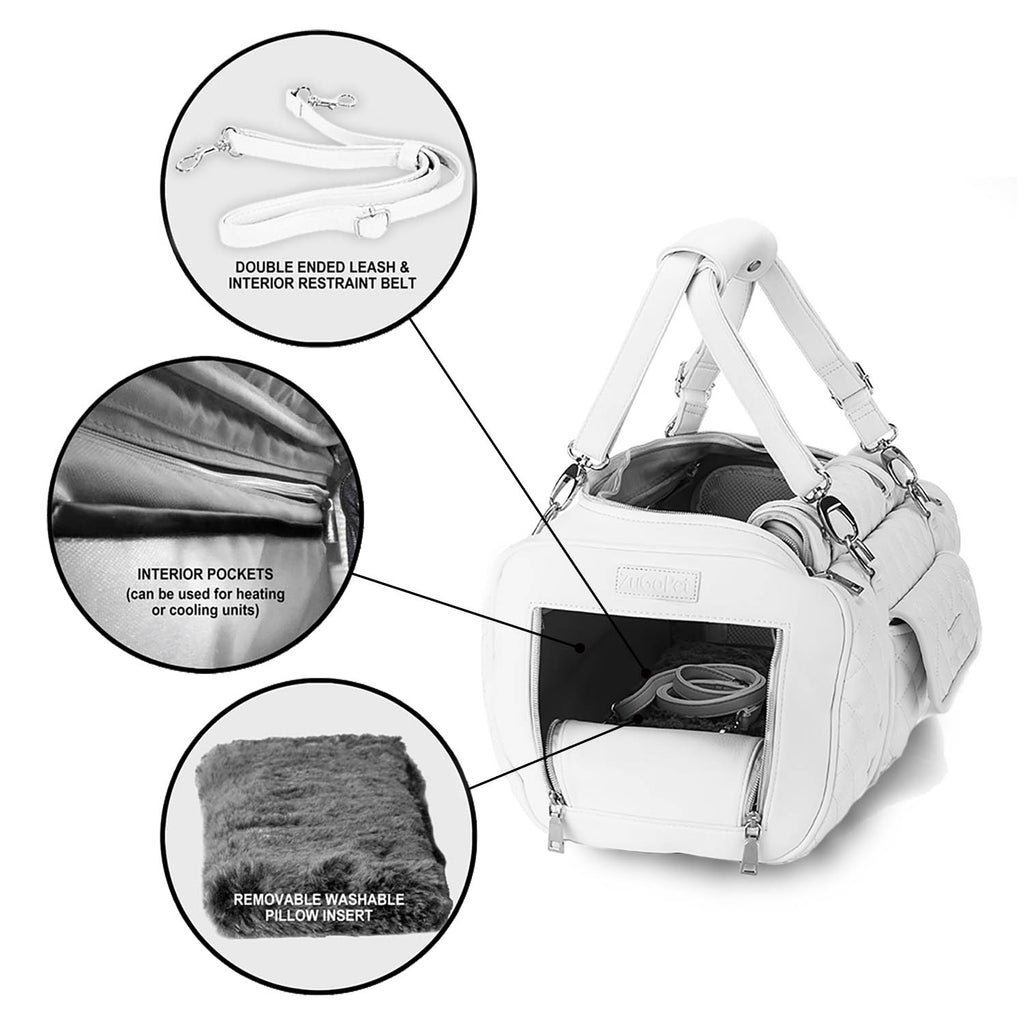 Our one of a kind pet carrier is a pet car seat, hands free walking leash, has an interior detachable walking leash, pet bed for small dogs or cats, airline approved carrier for small dogs, high fashion designer bag, waterproof and is vegan friendly.